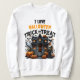 Uma casa assombrada fica decorada para o Dia das Bruxas, com abóboras entalhadas, morcegos de areia e uma bruxa em meio a uma atmosfera fantasma. O espírito festivo de picada ou tratamento enche o ar.