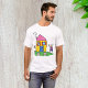 Adicione um toque divertido e criativo ao seu guarda-roupa com esta camiseta singular masculina com um desenho colorido infantil de uma casa feliz. Esta design divertida mostra uma casa amarela brilhante com um telhado cor-de-rosa, janelas cheias de alegria, e uma figura alegre de bastão balançando com entusiasmo. O estilo desenhado à mão traz uma sensação caprichosa e nostálgica, fazer esta camiseta perfeita para visto casual, passagens de fim de semana ou estilo relaxado do dia a dia. Feita para conforto e durabilidade, esta camisa é excelente para qualquer um que ama designs artísticos e alegres. Um presente perfeito para artistas, sonhadores e aqueles que desfrutam de uma forma única e leve.