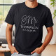 O script de caligrafia branca moderno e casual "Sr.", escrito na camiseta de casamento masculino, apresenta texto personalizado com o sobrenome do noivo e a data/data de casamento estabelecida. Perfeito para o recém-casado vestir na lua de mel e além! Visite nossa loja para a camisa correspondente da Sra..