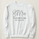 A escrita de caligrafia negra moderna e casual "Sra." da camisola de casamento feminina apresenta texto personalizado que pode ser personalizado com o novo sobrenome casado da noiva e a data / data do casamento estabelecida. Perfeito para o recém-casado vestir na lua de mel e além!