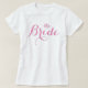 Esta doce camiseta rosa e branca fará um presente perfeito para a noiva! Apresentando a palavra de solteiro "Bride" em letras cor-de-rosa suave com um contorno de cinza fino em relação ao pano de fundo branco brilhante da cor da camiseta. A fonte é um estilo feminino, romântico. Um presente divertido para festa de solteira noite ou fim de semana, chá de panela, lua de mel ou para o dia do grande evento.