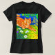 Camiseta com pintura de animais de Louis Wain (1860-1939). Um gato listrado de laranja anda num campo verde à noite. Flores brancas, roxas e vermelhas estão no primeiro plano. Um presente maravilhoso para amantes de gatos e arte inglesa.