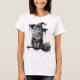 Show off your Halloween Spirit with this adorable cat sitting on a broomstick wearing a witch's hat. Great for any day casual wear, or to a party. Back of shirt can be customized.