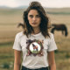 Cavalos Cavaleiros T-Shirt. © Camisetas & Sweats na Zazzle. Esta árvore tem um design de cavaleiros que tem um cavalo no meio e a estrutura inclui um chapéu de cowboy e botas e uma corda junto com outros motivos relacionados a cavalos.