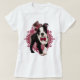 Filhote de cachorro bonito do terrier de Boston com o fundo stripy do fundo do chapéu alto, do laço e do vintage magenta, pintado pelo artista Maryline Cazenave.