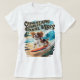 Um cachorro arrogante do rei cavaleiro Charles Spaniel caminha sem medo numa prancha de surfe numa onda massiva perto de uma ilha tropical.
