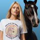 Esta camiseta personalizável apresenta uma bela ilustração de um cavalo branco sobre um fundo creme. O design é aprimorado ainda mais com uma borda escalada de tendência e bolinhas divertidas, criando uma aparência caprichosa e na moda. Adicione um nome ou seu próprio texto para criar um presente único para cavaleiros, amantes de cavalos e entusiastas equinos. Perfeito para aniversários, feriados ou qualquer ocasião.