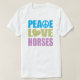 Cavalos do Amor pela Paz... O que mais você precisa na vida? Presente perfeito para qualquer viciado em cavalos. Não importa se você é um treinador profissional de cavalos, você tem um cheio estável de cavalos, você leva o cavalo de volta para as aulas semanais, seu quarto ou casa é cheio de coleções de cavalos, ou você sonha com o dia em que você tem uma grande fazenda com cheio de cavalos e outros animais...você é viciado em cavalos! Engraçado ideia de presente para qualquer amante de cavalos. Excelente para qualquer diva de cavalo. Veja nosso compro por um Amor de Paz mais divertido e único...camisas e presentes.
