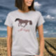 Mostre seu amor por cavalos com esta design com uma bela silhueta de cavalo correndo em marrom escuro As palavras "cavalos selvagens" estão em uma cor castanha avermelhada.