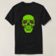 Crânio verde assustador com olhos vermelhos brilhantes. Esta camisa está pronta para uma festa de Halloween. Seja a vida da festa.