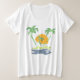 Camiseta Cenário de praia de ilha tropical. Árvore de palme