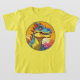 Adicione um pouco de rugem ao seu guarda-roupa com esta camiseta vibrante com um design de dinossauro corajoso e colorido com uma vibração vintage em quadrinhos. Esta camisa gráfica pré-histórica ao estilo cartoon certamente atrai atenção instantaneamente e é perfeita para crianças ou qualquer pessoa que ame história natural!