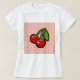 Cerejas vermelhas brilhantes sobre um fundo do padrão floral cor-de-rosa com estilo retrô