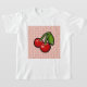 Cerejas vermelhas brilhantes sobre um fundo do padrão floral cor-de-rosa com estilo retrô