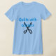 Esta engraçada, mas bonito camiseta azul sobre colcha azul certamente vai convidar sorrisos! O texto "Quilts with scissors" está em modelo para facilitar a personalização do texto, se você escolher, com as letras definidas para aparecerem sobre a parte superior da tesoura, como mostra este design de camiseta colorido de algodão. NOTA: TAMANHOS EXECUTAM PEQUENO — então, peça um tamanho ou dois maiores para um ajustado suficientemente solto. Máquina de lavar frio, feita nos EUA.