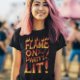 Um design gráfico com as palavras Flame On Bro! Partys Lit em negrito e estilizado, com um design de chama.
