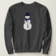 Wrap yourself in cozy winter charm with this whimsical snowman sweatshirt! Featuring a charming snowman in a classic black top hat with a blue band and a matching scarf for a touch of timeless charm. Set against a soft, dark grey women's sweatshirt, the design pops with crisp seasonal color and warmth. A festive yet wearable piece that brings a smile all winter long/