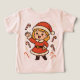 Cute cartoon girl dressed as Santa, waving joyfully among candy canes and snowflakes. Perfect for Christmas kids’ gifts and holiday stationery.