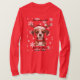 Camisola vermelha com um filhote desapontado e fofo que acabou de ser informado que não pode juntar-se à equipe de renas de Papais noeis