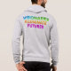 Este capuz zip-cheio apresenta o inspirador design de "Visionários Iluminados Futuros" no verso. O gráfico exibe o texto em um gradiente multicolorido impressionante que flui do azul elétrico para o laranja feroz até o roxo profundo, criando um efeito radiante e chamativo. A fonte moderna e os detalhes sutis do raio-luz lhe dão uma sensação futurista. Este versátil capuz é perfeito para a camada e adiciona um toque de estilo moderno e otimista a qualquer aspecto casual.