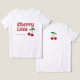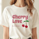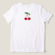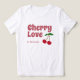 Uma camiseta engraçada com ilustração de cerejas e suas folhas verdes, e dois textos vermelhos personalizáveis: presente perfeito para jardineiro, vegetariano ou amantes de frutas! Há também um design de cereja atrás, e você pode substituir fotos por seu próprio!