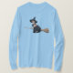 Um Chihuahua está vestido como uma bruxa e está cavalgando uma vassoura.