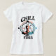 Mulher meditando gráfico com texto, "Chill Vibes" relaxante, sensação iluminada.