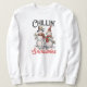 Esta camisola fofa e na moda apresenta um adorável casal de boneco de neve em chapéus e cachecóis tradicionais e borrifada com sombras e bagas com as palavras 'Chillin' com meus Snowmies'.