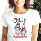 Celebre o feriado com esta divertida e festiva camisa de Natal "Chillin' with My Snowmies"! Com dois adoráveis bonitos bonitos bonecos de neve vestidos de cachecol e chapéus, esta design branca é perfeita para espalhar alegria de férias. Quer você esteja saindo com amigos ou assistindo a uma festa de Natal, esta camisa adiciona uma reviravolta divertida ao seu guarda-roupa de férias. É também um presente excelente para amantes de neve e aqueles que desfrutam de um pequeno humor de inverno!