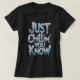 Uma ilustração digital representando a frase Apenas Chillin Você Conhece, feita em letras azuis geladas. As letras têm fosco aspecto com ícones pendurados nelas.