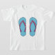 Uma ilustração de um par de chinelos de praia cor-de-rosa e azuis. É verão! O vamos faz uma pausa e diverte-te debaixo do sol. Você não está animado em preparar suas coisas para as férias? Não esqueça seus chinelos.