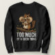Cartoon chipmunk with cheeks stuffed full of peanuts, paired with distressed text: “Too Much of a Good Thing.”