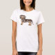 A ilustração original de Destei de um bonito cabelo, chocolate castanho e casaco de maçã bronzeado, cão da raça Dachshund.