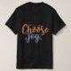 The image displays the uplifting phrase “Choose joy” written in a decorative cursive font. The word “Choose” is in brown, while “joy” is in soft, light purple, adding a gentle and cheerful mood. Above “Choose” is a small right-pointing arrow, as if nudging the viewer toward happiness. Surrounding the word “joy” are tiny decorative elements like heart symbols and arrows, enhancing the joyful and encouraging tone. This design is ideal for affirmation-themed products or items that inspire positivity.