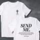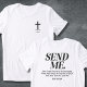 Esta camiseta cristã de alcance mostra o poderoso verso de Isaiah 6:8, "Então ouvi a voz do Senhor dizendo, 'Quem devo enviar? E quem vai atrás de nós?" E eu disse, "Aqui estou eu. Envie-me!" — uma declaração ousada e inspiradora de fé e serviço. Ideal para missões da igreja, grupos de jovens, equipes de voluntários ou eventos espirituais, esta design combina uma mensagem "ENVIE ME" impressionante nas costas com um gráfico cruzado na frente, onde você pode personalizá-la com seu nome de igreja, ministério ou grupo. Excelente para apoiar esforços de sensibilização, viagens de missão ou visto diário. Quer você esteja compartilhando o evangelho ou simplesmente representando sua fé, esta camiseta cristã personalizável é uma maneira significativa de unir seu grupo e fazer uma declaração de propósito onde quer que você vá.