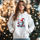 Sophisticated festive gnome design with a red and white hat holding a candy, surrounded by winter flowers and Christmas details. Perfect for a modern and elegant decoration.