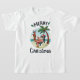 Funny Christmas design featuring an illustration of Santa Claus relaxing at the beach under a palm tree on a little island. A perfect match for Christmas in July as well as for real Christmas in December.