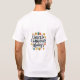 A design da t-shirt apresenta a frase "Chuckle Champions Always" em letras negrito e multicoloridas, rodeadas de formas lúdicas, abstrato e símbolos que representam risos e alegria. A design evoca um senso de humor, positividade e a importância de encontrar alegria na vida