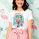 Camiseta Chuva Tropical Retro de Flamingo para Chá de Panel