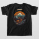 Ciclismo Vida, retrorreflecção em laranja e azul de um ciclista andando pelas montanhas e pela floresta com o sol ao fundo