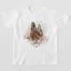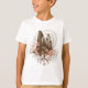 Uma ilustração de uma cidade com design floral sobre ela. Esta design parece realmente eficaz nesta camiseta