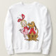 A bright, cheerful cartoon illustration of Cindy Lou Who and Max, characters from the world of Dr. Seuss. Cindy Lou Who, a blonde girl wearing a pink dress, pink slippers, and a large red bow and scarf, is smiling and dancing alongside a brown dog, Max, who is also wearing a red scarf. Both characters are depicted in the iconic, simple, and expressive Dr. Seuss drawing style, set against a clean white background. The image evokes themes of friendship, innocence, and the joy of the holidays.