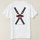 Este tshirt tem cintas e um laço na parte dianteira. Na parte traseira tem as cintas do cruzamento para trás e o beijo este logotipo