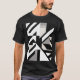 Camiseta cinza branca negra, geométrica aguda