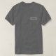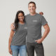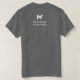 Uma t-shirt para um profissional que anda com cães, uma babá, um treinador de cães ou um prestador de cuidados de dia de cão. O nome da sua empresa está impresso no peito esquerdo da t-shirt e o verso da peça de vestuário apresenta o nome da sua empresa juntamente com um gráfico canino. O texto e o gráfico estão em branco sobre um fundo de cinza. Seja inteligente e profissional, além de aumentar a visibilidade marca de seu negócio de serviços para animais domésticos.