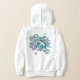O capuz de vôlei desta menina legal apresenta uma "explosão" de tetos, cinzas e voliceiros brancos de dimensões variadas, cinzas e estrelas brancas - os painéis de vôlei de téal e cinza são misturados com um padrão caleidoscópico floral - personalizado com o nome do atleta e o número de camisola - design está na parte de trás da duplicata de capuz mas pode ser movido ou na frente - por katz_d_zynes