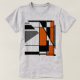 Formas e linhas geométricas em cor de laranja escuro, cinzas e preto, inspiradas pelo estilo moderno do século Médio. Foto aqui em uma camiseta de cinza de aço leve, com outras cores e estilos disponíveis, este é um design brilhante e sofisticado, oferecendo uma adição polida mas quente para seu roupa casual e cotidiano (seja para trabalho/escola, esportes/recreação, relaxamento/socialização ou apenas execução). Esta camisa de "arte arável" pode iluminar a monotonia de vestir para nosso mundo mais casualmente cansado, e contribui para um sentimento de estilo personalizado.