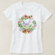 Um círculo agradável de flores de jardim em uma bela camisa branca. Uma design pacífica e encantadora.