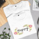 Bela citação feliz para a camiseta botânica do verão! Esta citação positiva e inspiradora camiseta, que apresenta uma flor silvestre rosa e amarela, impressão de aquarela e folha verde, para espalhar boas vibrações positivas Esta design de camiseta é perfeita para vibrações quentes do verão para espalhar boas vibrações e felicidade para pessoas com uma roupa casual fofa!