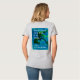 Esta camiseta apresenta uma citação de Lao Tzu, antigo filósofo chinês. A citação é alegre - "A música na alma pode ser ouvida pelo universo." O fundo é abstrato trabalho de arte em formas e tons de azul e verde aqua.